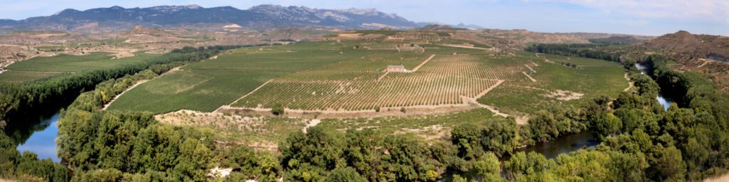 Rioja is a wine region in Northern Spain, located between both banks of the Ebro River. The Pyrenees and Cantabrian Mountains provide a rainshadow effect, protecting the region from heavy ocean breezes.